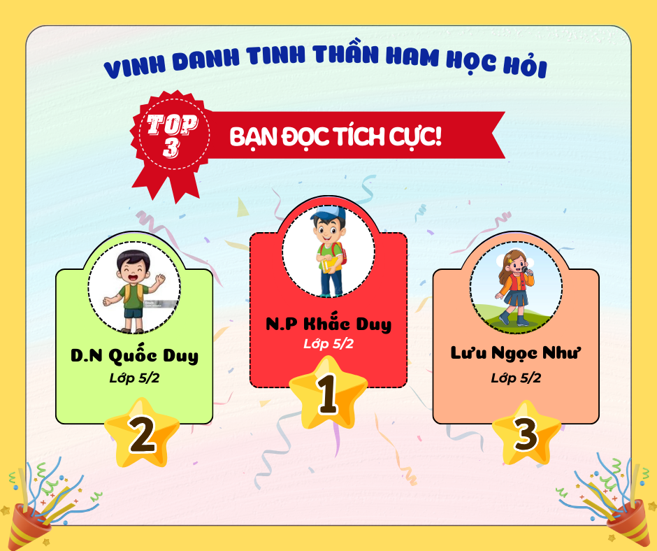 Trong tháng 3, ba em học sinh có thành tích nổi bật gồm: