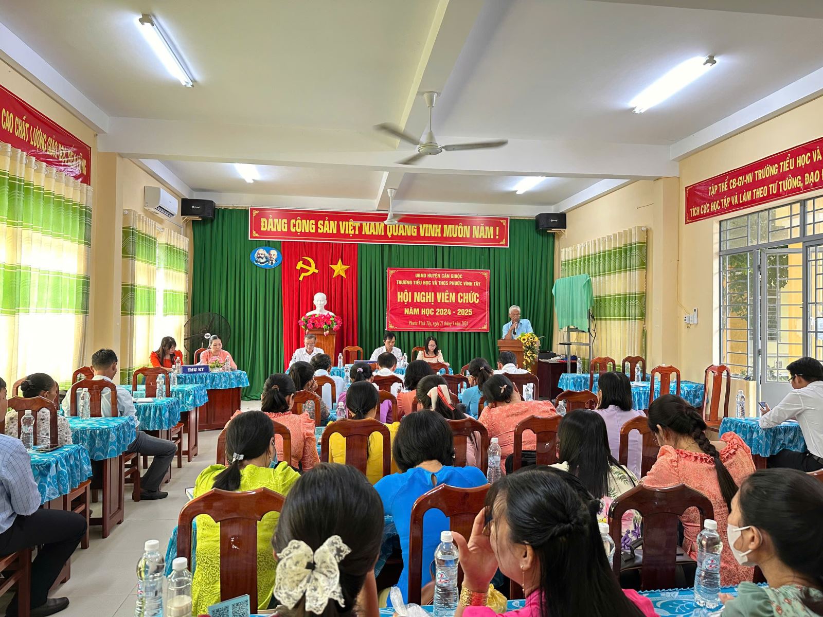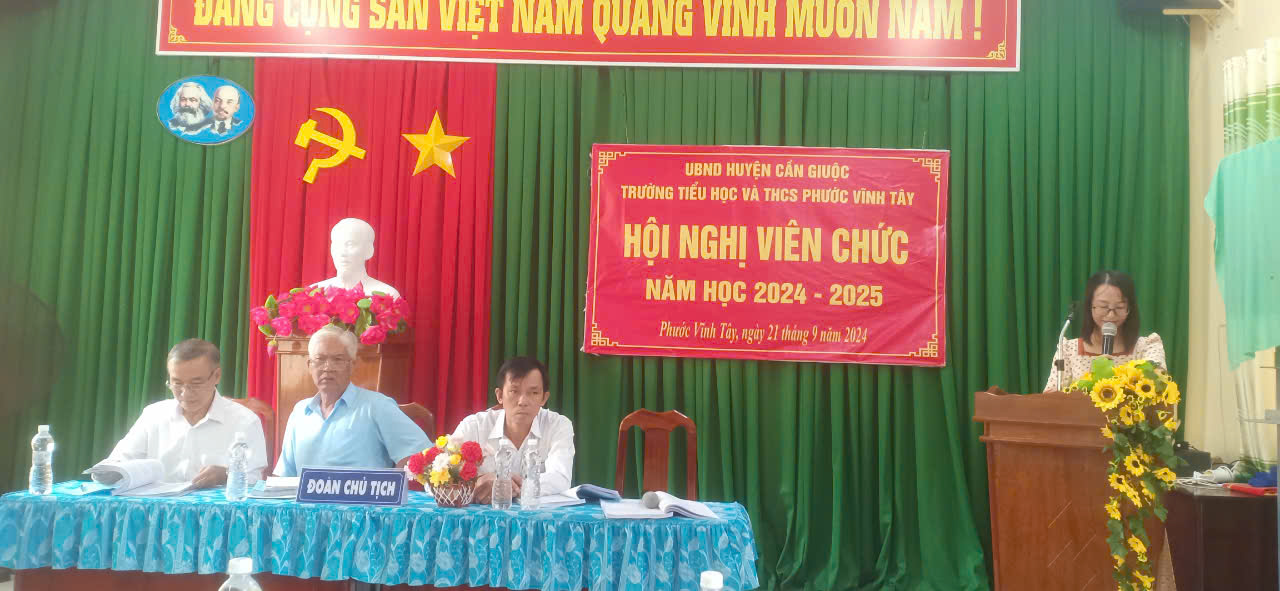 Ngày 21/9/2024, trường Tiểu học và THCS Phước Vĩnh Tây tổ chức Hội nghị cán bộ công nhân viên chức với sự tham dự của toàn bộ cán bộ, giáo viên, nhân viên nhà trường.